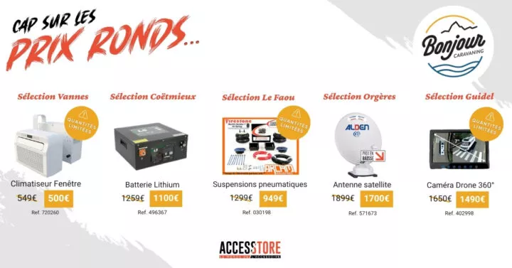 Profitez des prix ronds Accesstore pour équiper votre véhicule de loisirs au juste prix sur une sélection d'accessoires et équipements .