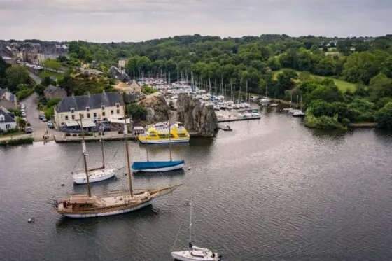 La Vilaine s’étire gracieusement à vos pieds, les toits rouges des maisons se serrent les uns contre les autres, et au loin, vous apercevez les collines verdoyantes de la campagne bretonne.