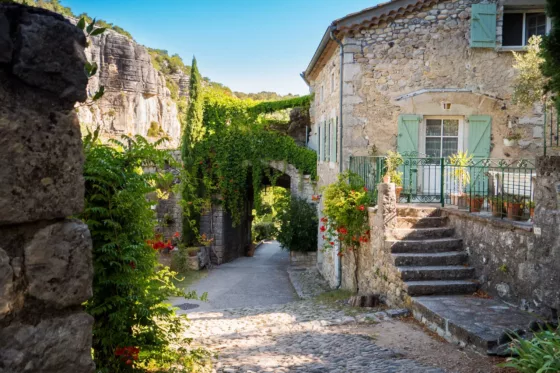 Matin : Terminez votre séjour en beauté par une balade à Antraigues-sur-Volane, charmant village perché au cœur des Cévennes ardéchoises, rendu célèbre par le chanteur Jean Ferrat qui y vécut de nombreuses années. Flânez dans les ruelles escarpées aux maisons de pierre, admirez les sculptures de visages gravées sur les murs du village, et laissez-vous imprégner par l’ambiance artistique qui règne encore ici.