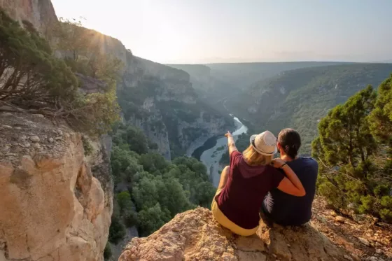 Direction la rivière pour un après-midi baignade ou descente en canoë au pied du célèbre Pont d’Arc, une immense arche naturelle de 60 mètres sculptée dans la roche par l’Ardèche. Ce site classé est un incontournable de la région. Plusieurs bases nautiques proposent des parcours courts, parfaits pour une première découverte, avec retour en navette.